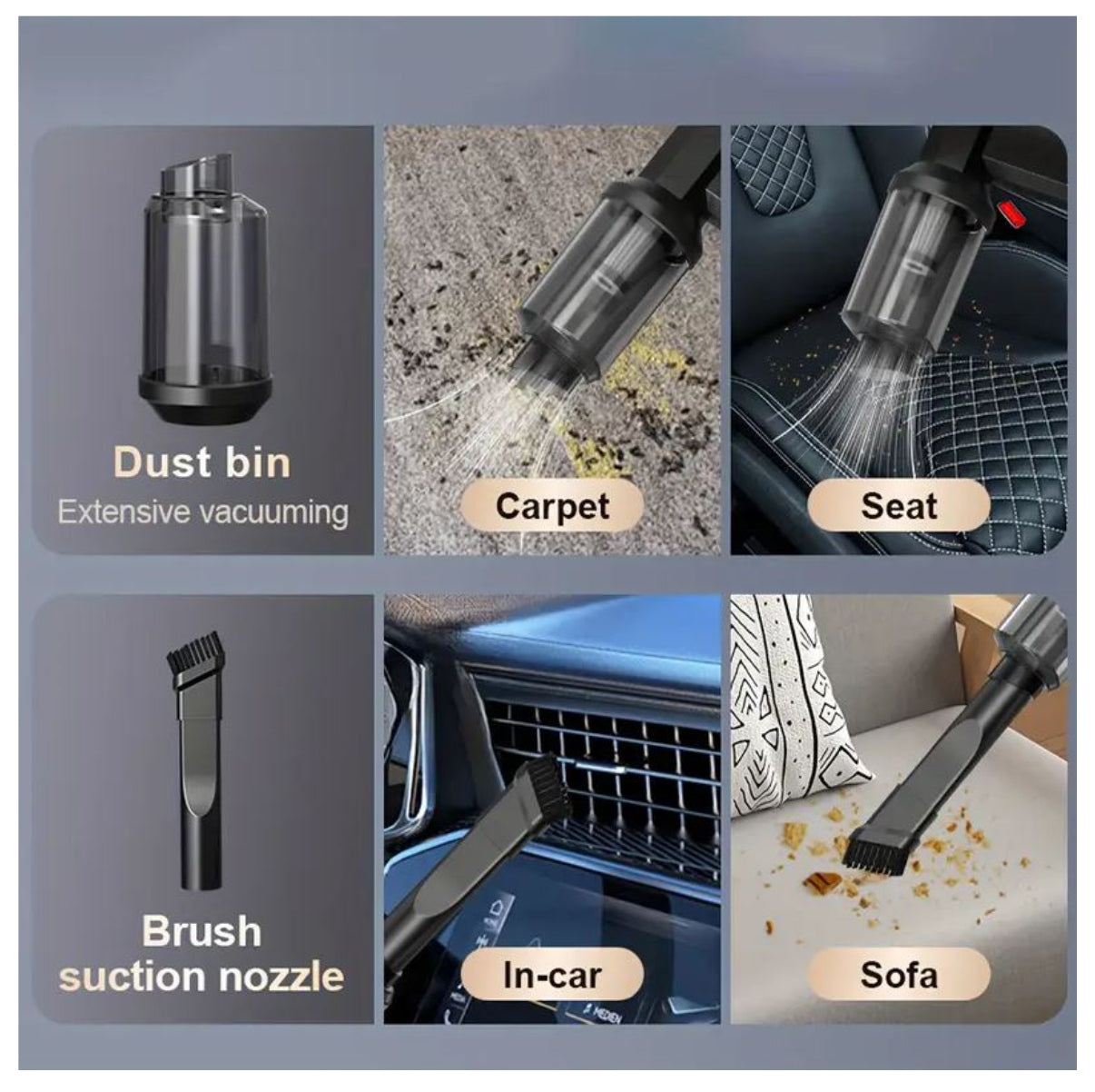 ¿Cansado de polvo en tu carro, migas en el sofá, suciedad en el teclado o rincones imposibles de limpiar?